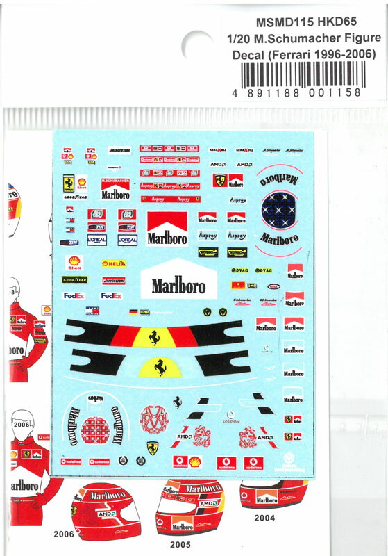 1/20 M.シューマッハ フィギュア用デカール(フェラーリ 1996-2006)【MSMクリエーション】